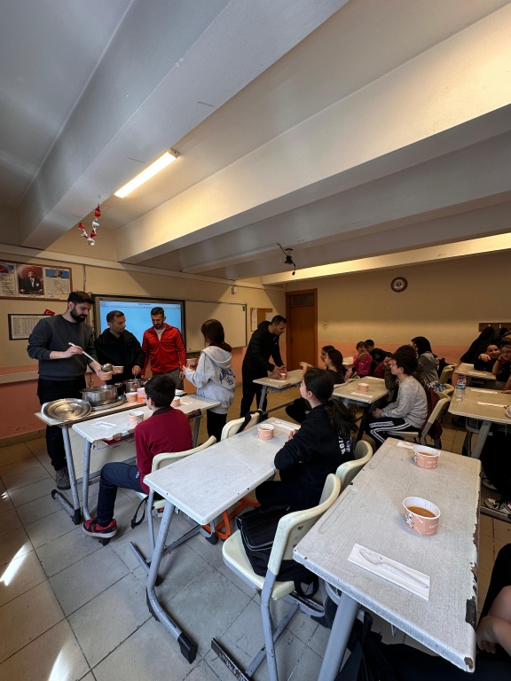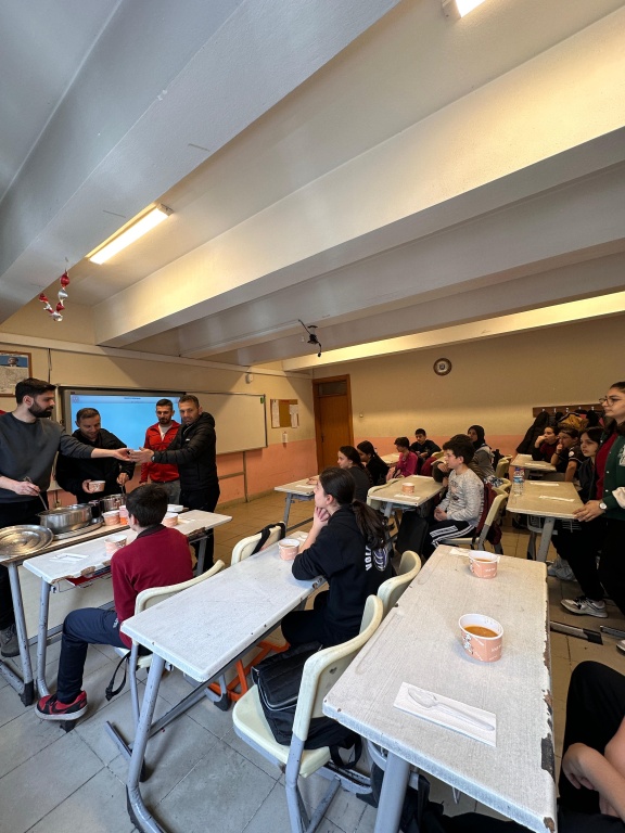 Okulumuz 7/B sınıfı öğrencileri tarafından Okulumda Sağlıklı Besleniyorum Projesi kapsamında sınıf rehber öğretmeni Merve Aydın Bilgin tarafından organize edilerek öğrenciler tarafından hazırlanan çorbalar sağlıklı ve doğal beslenmeye bir örnek olaması vesilesi ile öğrencilere ikramda bulunuldu.
