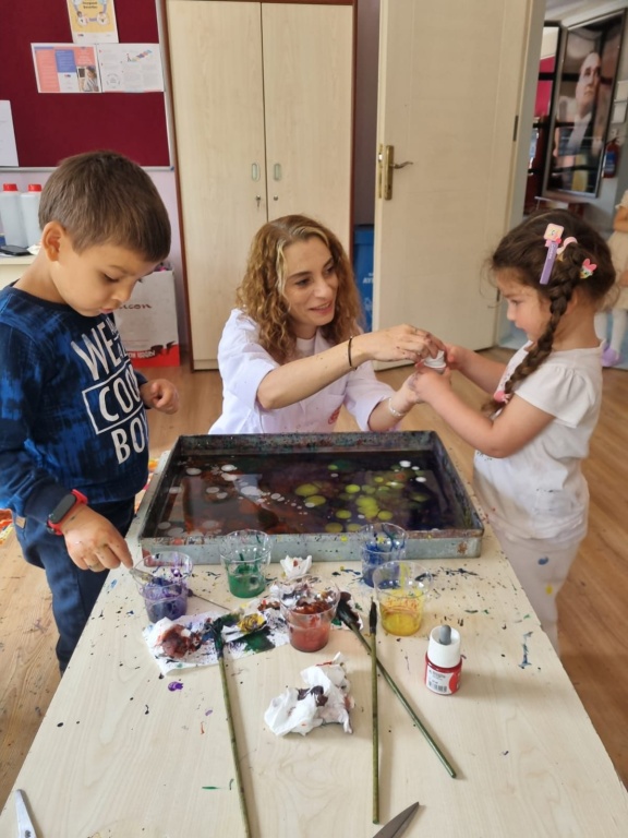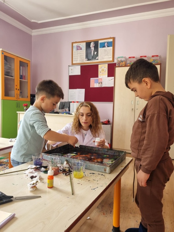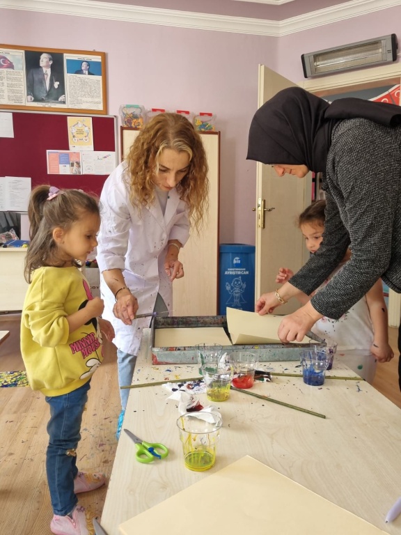 İlçemiz Ali İbrahim Ağaoğlu Anaokulu iş birliğiyle düzenlenen etkinlikte, minik öğrencilerimiz okulumuz Görsel Sanatlar Öğretmeni Aybike Hicran Balta rehberliğinde ebru sanatıyla tanıştı. ️ Su üzerine renklerin ahenkle dans ettiği bu özel çalışmada öğrencilerimiz hem keyifli vakit geçirdi hem de geleneksel sanatımızı yakından tanıma fırsatı buldu. Bu güzel etkinlikte emeği geçen öğretmenimize teşekkür ediyor, minik sanatçılarımızı tebrik ediyoruz.